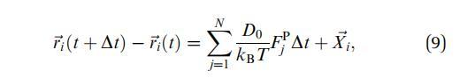 其中,F(xiàn)Pj是由于所有其他N 1圓盤作用在圓盤j上的直接總力,D0是圓盤擴(kuò)散系數(shù),kB是玻爾茲曼常數(shù),T是溫度,%Xi是源于溶劑-粒子碰撞的粒子i的隨機(jī)位移矢量。%Xi從具有零均值和協(xié)方差矩陣的高斯分布中采樣: