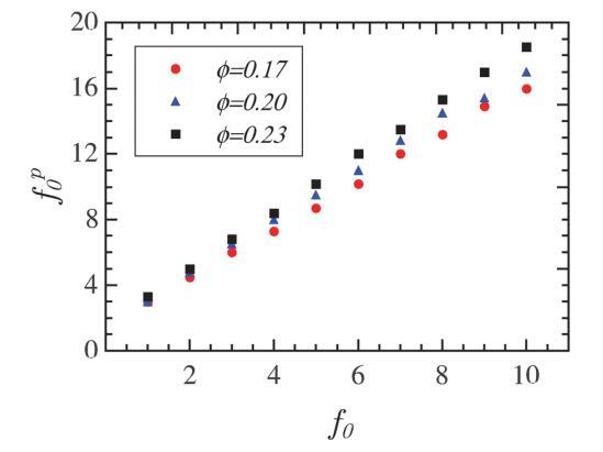 由于點偶極子模型的簡單性,值得尋找兩個模型之間的對應(yīng)關(guān)系。為此,我們確定了一組f0在三個不同面積分數(shù)下的有效相互作用強度f p0。對于感興趣的參數(shù)范圍,可以在圖10中看到f p0和f0之間的關(guān)系。該圖有助于選擇適當?shù)膄 p0,以便通過僅基于更簡單的點偶極子模型進行模擬來計算單層的結(jié)構(gòu)特性。或者,如果實驗對相關(guān)函數(shù)由點偶極子近似建模,則sffi ep的值可以使用根據(jù)該圖估計的相應(yīng)f0計算。