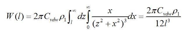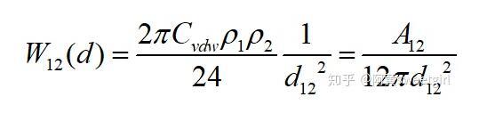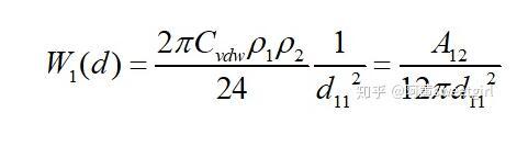 若取l為物質本體內分子間的距離d11,且兩半無限體為同一種物質時,則上式的互作用勢變為(取絕對值
