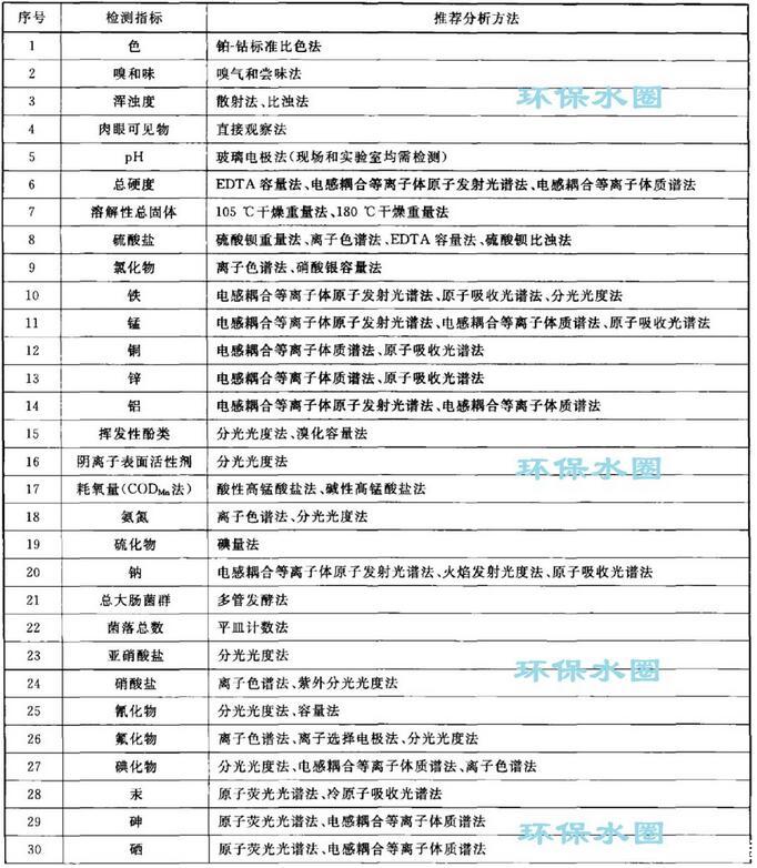 5.3地下水質量調查與監測指標以常規指標為主,為便于水化學分析結果的審核,應補充錦、鈣、鏡、重碳酸根、碳酸根、游離二氧化碳指標;不同地區可在常規指標的基礎上,根據當地實際情況補充選定非常規指標進行調查與監測。