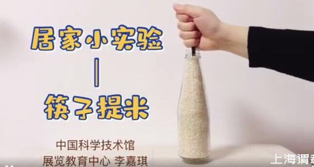 將筷子插入一個裝滿大米的瓶子中,發現一根筷子就能提起整瓶大米,這是由于筷子與米之間以及米與米之間的摩擦力很大造成的。