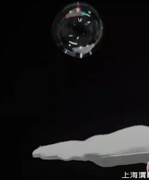 2.將膠水和混合溶液按照1:2的比例混合,此時再用吸管蘸取溶液,吹出泡泡。帶著手套接觸泡泡,此時的泡泡不僅不易破,并且用手接觸后還能彈跳。