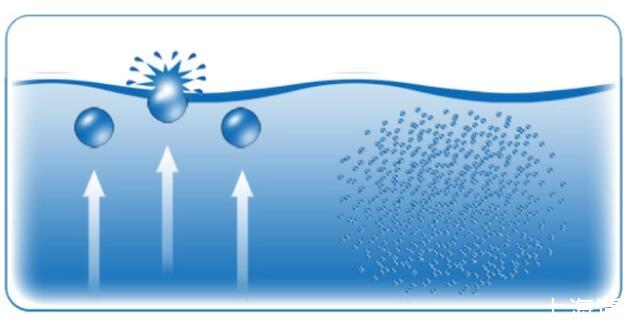 理論上氣泡形成消耗能量依賴于界面面積,界面面積決定于氣泡表面張力。直徑小于25微米的小氣泡表面剛性強,類似于高壓氣球,不容易破裂。數毫米直徑的大氣泡表面比較柔軟,很容易變形破裂。大氣泡的浮力比較大很容易上升到液面。Stokes公式R=ρgd2/18μ(ρ=密度,g=重力加速度,d=氣泡直徑,μ=粘滯度)可計算氣泡上浮速度。氣泡上漂浮速度和氣泡直徑的平方成正比,這種關系只使用于小氣泡。直徑大于2毫米的大氣泡由于外形發生變化,上升速度并不會受直徑影響。低于1微米的納米氣泡上升速度非常慢,遠低于布朗運動,整體上表現為不上升。