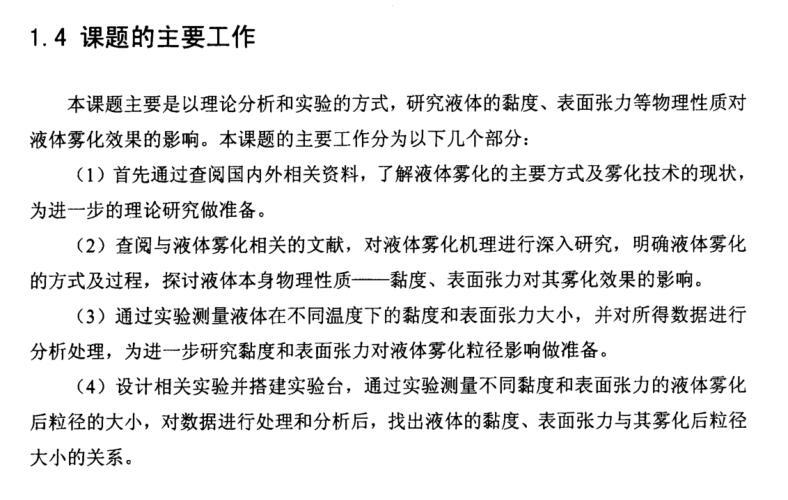 【摘要】:本文首先通過查閱文獻,對液體的霧化機理進行了理論研究,探討了黏度和表面張力對液體霧化的影響。然后文章通過對液體在不同溫度下的黏度和表面張力大小的測定及黏度和表面張力對液體霧化粒徑大小影響的實驗研究,得出了黏度和表面張力對液體霧化粒徑大小的影響規律。