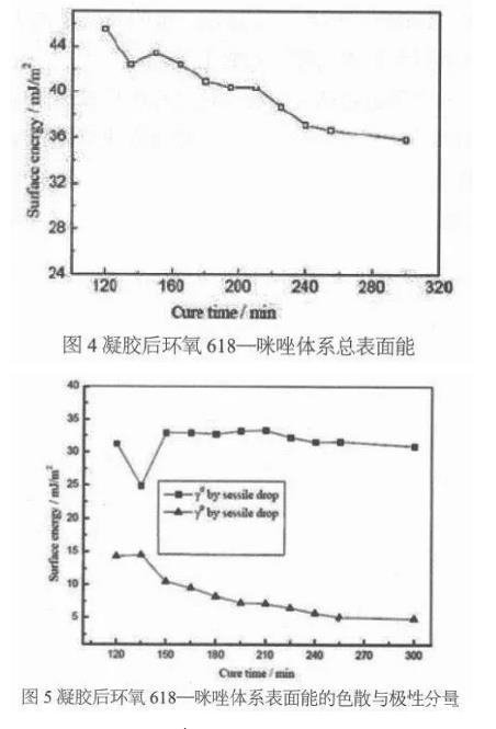 因此作者推斷環(huán)氧618-咪唑體系固化反應(yīng)120min之后表面能極性分量的降低是由于羥基關(guān)能團和環(huán)氧官能團的變化引起。