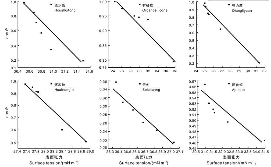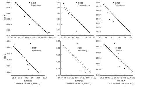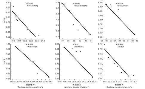 圖3苦參堿表面張力與接觸角的關系