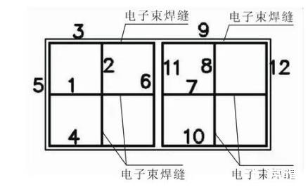 圖1后艙管理裝置下組件結(jié)構(gòu)及電子束焊縫位置示意圖